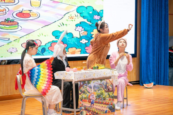 《獅子的噴嚏》《老虎拔牙》《兔子先生的菜園子》等舞臺劇精彩呈現(xiàn),在帶來歡笑同時,巧妙傳遞故事蘊含的道理,激發(fā)孩子們諸多美好品質(zhì)與能力,也展現(xiàn)出學(xué)前教育專業(yè)學(xué)生的出色表演能力。