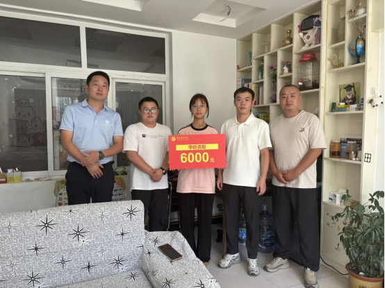 走訪過程中,老師們細(xì)致了解學(xué)生的實際情況。董煒驍與患病母親和外公一同生活,家庭經(jīng)濟來源有限;朱春璐父母離異多年使她早早養(yǎng)成了獨立的性格,但在大學(xué)學(xué)費面前也感到了巨大的壓力,這段時間焦慮和迷茫的情緒使她陷入深深的無助,而老師們的到來無疑為她帶來了一絲曙光。老師們耐心介紹了國家和學(xué)校的各項資助政策,并代表學(xué)校為兩位同學(xué)各送上6000元助學(xué)金,緩解他們?nèi)雽W(xué)的經(jīng)濟壓力。