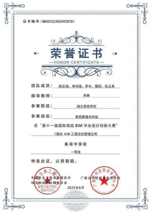 國際高校BIM畢業(yè)設計創(chuàng)新大賽連續(xù)多年入選由中國高等教育學會發(fā)布的《全國普通高校學科競賽排行榜》,成為建筑類相關專業(yè)院校最為關注的全國性競賽之一,亦列我校39項高水平學科競賽之一。大賽涵蓋建筑設計、施工管理、成本控制等多個模塊,全面考察學生的BIM技術應用能力和團隊協作水平。第十一屆大賽共吸引728所院校、1.4萬余支團隊、8萬余名師生參賽,其中712所院校、5004支團隊成功晉級。面對如此激烈的競爭,我校學子再奪國家級一等獎2項,以卓越成績展現了在工程設計與建筑信息化領域的硬核實力與創(chuàng)新風采。