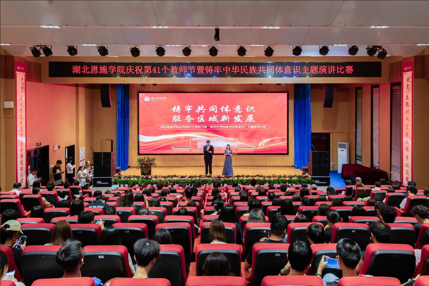 金秋九月,桃李芬芳。2025年9月10日晚,湖北恩施學院隆重舉行慶祝第41個教師節(jié)暨“鑄牢中華民族共同體意識”主題演講比賽。恩施州委統(tǒng)戰(zhàn)部、州委教育工委、湖北民族大學、州廣播電視臺相關人員及學校領導擔任評委。
