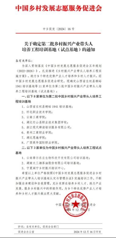 近日,中國(guó)鄉(xiāng)村發(fā)展志愿服務(wù)促進(jìn)會(huì)發(fā)布了關(guān)于確定第二批中國(guó)鄉(xiāng)村振興產(chǎn)業(yè)帶頭人培養(yǎng)工程培訓(xùn)基地(試點(diǎn)基地)的通知。湖北恩施學(xué)院入選為第二批中國(guó)鄉(xiāng)村振興產(chǎn)業(yè)帶頭人培養(yǎng)工程培訓(xùn)基地(試點(diǎn)基地),成為此次全國(guó)僅8家的入選單位之一。