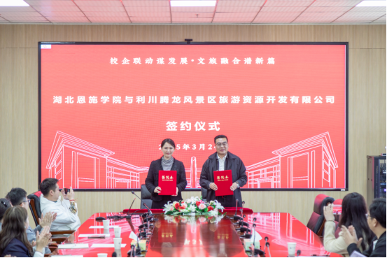 2025年3月24日,湖北恩施學(xué)院與利川騰龍風(fēng)景區(qū)旅游資源開發(fā)有限公司在湖北恩施學(xué)院成功舉辦戰(zhàn)略合作簽約儀式,雙方正式攜手,為推動(dòng)文旅融合發(fā)展注入強(qiáng)勁動(dòng)力。此次合作致力于整合雙方優(yōu)勢(shì)資源,深度促進(jìn)教育與產(chǎn)業(yè)融合,助力區(qū)域文旅事業(yè)邁向新的發(fā)展階段。