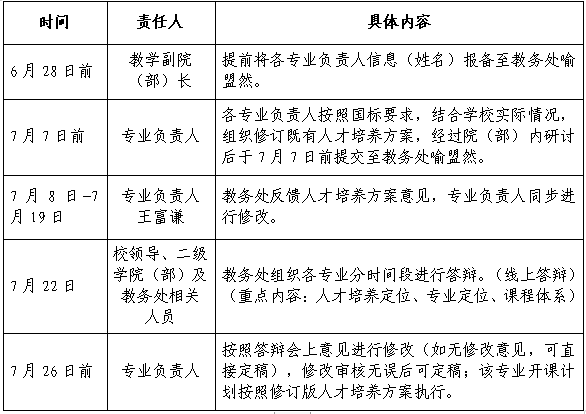 1.各學(xué)院(部)需提前準(zhǔn)備好人才培養(yǎng)方案答辯材料,并按照要求和時(shí)間點(diǎn)進(jìn)行修改。