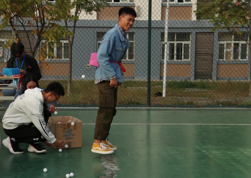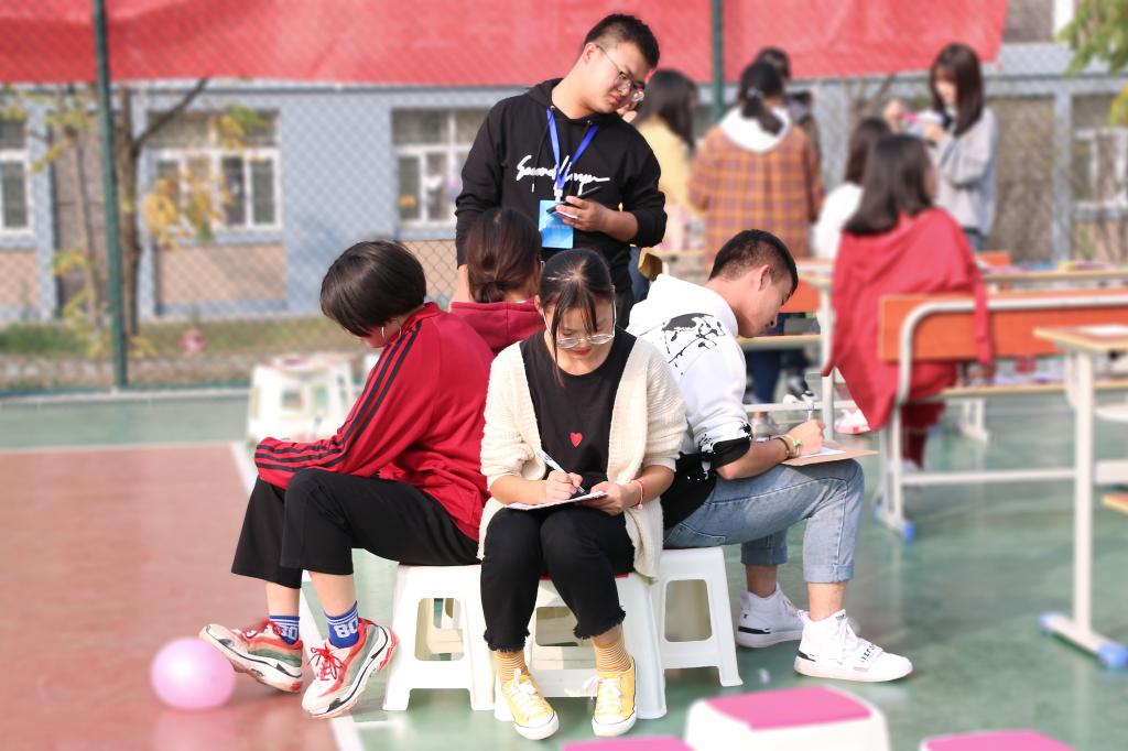 本次趣味運動會共包括知心朋友、抖一抖、背對背擁抱、摸石過河、手腳并用、鴨子過河六個項目。300余名參賽選手每四人分為一組,先后展開競賽,場上比拼激烈,你爭我趕,場外同學歡呼聲、加油聲不絕于耳。在鴨子過河項目中,參賽選手自己現(xiàn)場吹球后,氣球緊貼前面隊友后背,選手必須用力擁抱,在默契的配合下和共同的目標中,完成項目考驗,增進了情感和友誼。而在手腳并用項目中,則根據(jù)地上的手腳卡片提示,或靈活跳躍,或結果不一用錯肢體,考驗了選手們的肢體協(xié)作能力。