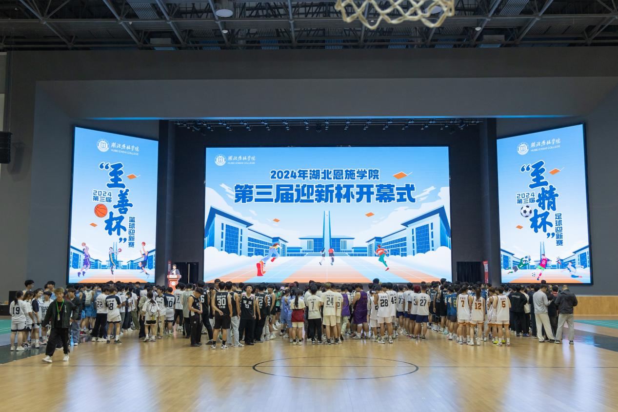 在陽(yáng)光灑滿校園的美好時(shí)節(jié),湖北恩施學(xué)院第三屆迎新杯開幕式于2024年10月31日在湖北恩施學(xué)院體育館舉行,這不僅是一場(chǎng)賽事,更是新生們展現(xiàn)青春活力、揮灑熱血激情的舞臺(tái)。在熱烈的掌聲與歡呼聲中,各學(xué)院運(yùn)動(dòng)員代表隊(duì)、教師代表隊(duì)、裁判代表隊(duì)有序進(jìn)場(chǎng),他們臉上洋溢著自信與活力,展示出團(tuán)隊(duì)精神與競(jìng)技狀態(tài)。
