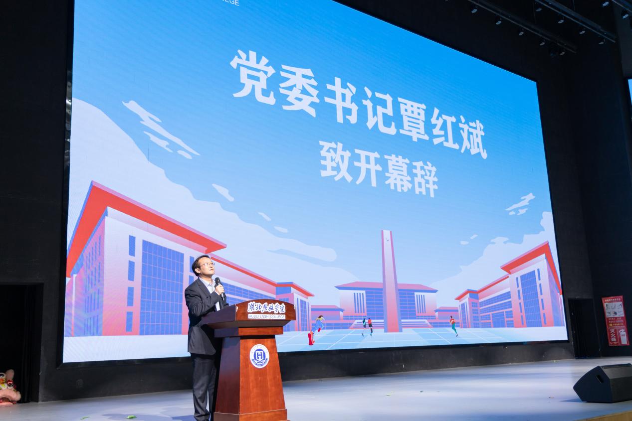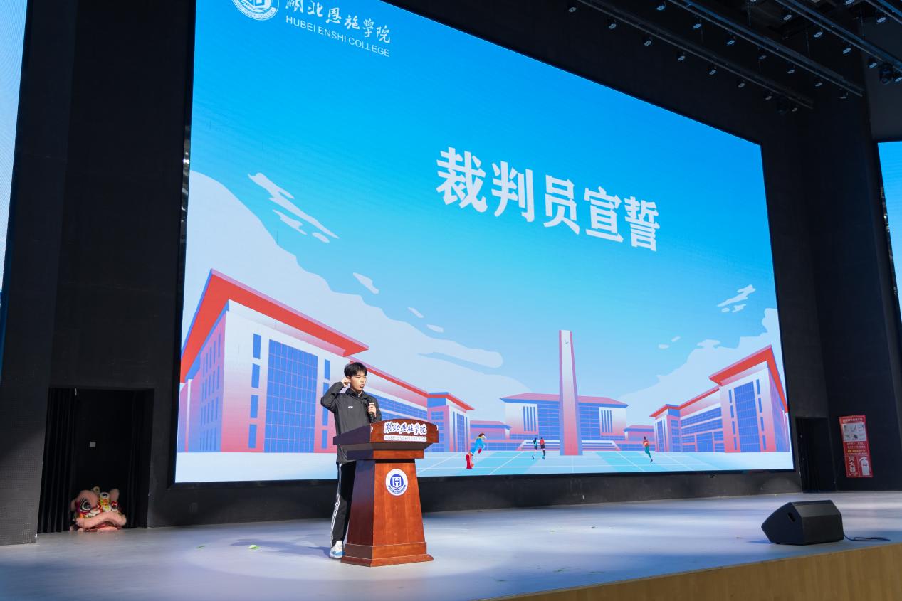 隨著主持人宣布開幕式開始,全體肅立,奏唱國(guó)歌。隨后湖北恩施學(xué)院黨委書記覃紅斌為開幕式致詞,覃書記首先對(duì)參賽的運(yùn)動(dòng)員們表示了肯定與鼓勵(lì),強(qiáng)調(diào)體育精神與團(tuán)隊(duì)合作的重要性,這次比賽不僅是一次體育競(jìng)技的盛會(huì),更是同學(xué)們展現(xiàn)自我、鍛煉意志的舞臺(tái),希望所有參賽者能夠以積極的態(tài)度參與比賽,享受體育帶來(lái)的快樂。