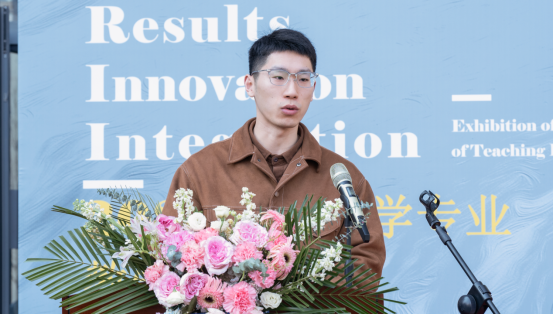 開(kāi)幕式上,教師代表葛宇回顧了自己在教學(xué)過(guò)程中的點(diǎn)點(diǎn)滴滴,他指出,此次展覽不僅帶來(lái)視覺(jué)享受,更是學(xué)科創(chuàng)新與美育傳承的生動(dòng)實(shí)踐。作為新入職教師,葛宇感慨角色轉(zhuǎn)變后責(zé)任重大。在教學(xué)中,學(xué)生從多維度提出的創(chuàng)意,讓他意識(shí)到課堂是師生思維互動(dòng)的平臺(tái)。他對(duì)學(xué)校為新教師提供的支持表達(dá)感謝,稱這極大助力了教學(xué)工作。談及展覽作品,葛宇表示,作品不僅展現(xiàn)出學(xué)生的技藝,更體現(xiàn)其對(duì)時(shí)代的思考。未來(lái),他將持續(xù)探索教學(xué)創(chuàng)新,打造兼具傳統(tǒng)與創(chuàng)新,夯實(shí)基礎(chǔ)且培養(yǎng)創(chuàng)新思維的課堂,以展覽為新起點(diǎn),推動(dòng)美育傳承。