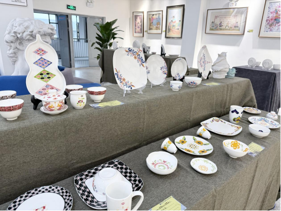 在基礎(chǔ)課程習(xí)作展區(qū),一幅幅作品筆觸細(xì)膩、色彩精妙。素描作品中,人物的神態(tài)、物體的質(zhì)感被刻畫(huà)得栩栩如生。色彩作品則在光影與色調(diào)的交織中,營(yíng)造出獨(dú)特的藝術(shù)氛圍,充分展現(xiàn)了學(xué)生們對(duì)藝術(shù)基本功的扎實(shí)掌握;創(chuàng)新實(shí)驗(yàn)探索展區(qū)宛如一個(gè)充滿奇思妙想的創(chuàng)意空間,學(xué)生們打破畫(huà)種界限,積極探索油畫(huà)、壁畫(huà)、中國(guó)畫(huà)、水彩畫(huà)等藝術(shù)形式的融合,巧用綜合材料和新型材料,開(kāi)辟藝術(shù)創(chuàng)作新路徑;民藝手工作品展區(qū)洋溢著濃厚的傳統(tǒng)文化氣息。學(xué)生們將陶瓷、剪紙、蠟染等民間傳統(tǒng)工藝與現(xiàn)代審美巧妙融合,在傳承經(jīng)典的同時(shí)進(jìn)行創(chuàng)新。一件件精美的手工藝品,不僅展現(xiàn)了學(xué)生們對(duì)傳統(tǒng)文化的尊重與熱愛(ài),更讓古老的民間藝術(shù)在新時(shí)代煥發(fā)出新的生機(jī);數(shù)字藝術(shù)作品展區(qū)則是科技與藝術(shù)的完美結(jié)合。學(xué)生們借助數(shù)字繪畫(huà)軟件、動(dòng)畫(huà)制作技術(shù)等,創(chuàng)作出一系列風(fēng)格獨(dú)特的數(shù)字藝術(shù)作品,為觀眾呈現(xiàn)出一場(chǎng)極具前瞻性的視覺(jué)盛宴。展覽期間,學(xué)生代表們化身專業(yè)講解員,穿梭在各個(gè)展區(qū)。他們憑借對(duì)作品的深入理解,從創(chuàng)作理念、藝術(shù)價(jià)值、技術(shù)應(yīng)用等多個(gè)維度,為嘉賓和師生進(jìn)行詳細(xì)闡釋。在講解過(guò)程中,學(xué)生們不僅分享了作品背后的創(chuàng)作故事,還介紹了自己在創(chuàng)作過(guò)程中遇到的挑戰(zhàn)和解決方法,讓觀眾對(duì)作品有了更深入的認(rèn)識(shí)。