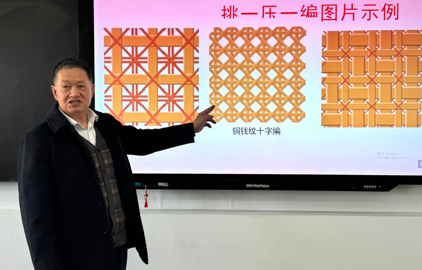 課堂上,陳老師針對大學(xué)生量身打造了“圖文+實物+口訣”的教學(xué)模式,他借助手繪示意圖與實物樣品解析竹編原理,細致拆解“挑一壓一”等編法,進行分步指導(dǎo),還提煉出“三壓一挑記規(guī)律”等口訣。學(xué)生興奮地分享道:“原本覺得困難重重,可跟著口訣,一下午就編出了平面小物件!”