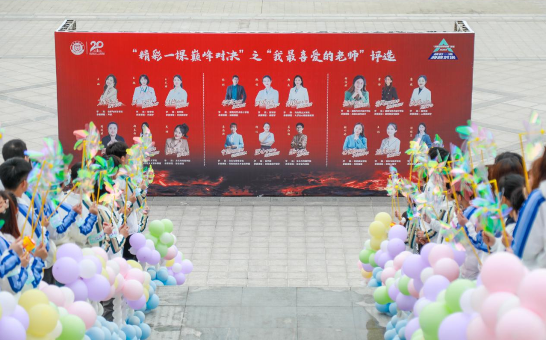 本次活動(dòng)由紅毯入場(chǎng)儀式、開(kāi)幕式、現(xiàn)場(chǎng)比賽及頒獎(jiǎng)典禮四個(gè)環(huán)節(jié)組成。紅毯入場(chǎng)儀式上,喜慶的氣球階梯通道,寄托了對(duì)老師和同學(xué)們未來(lái)走向輝煌的美好祝愿;180位學(xué)生大眾評(píng)審團(tuán)揮舞的小風(fēng)車(chē)、熱情的掌聲、響亮的呼聲展現(xiàn)了他們青春的活力,也寄托了他們對(duì)老師們的美好祝福;18位參賽教師優(yōu)雅的身姿、洋溢的笑容也充分凸顯了他們對(duì)教育的熱愛(ài)、對(duì)學(xué)生的溫情。