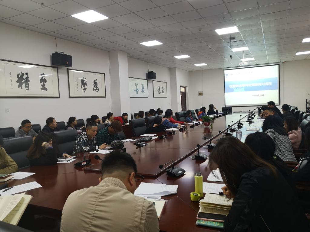 4月12日,我校在圖書館大會議室開展了第四期輔導(dǎo)員培訓(xùn),學(xué)工處副處長李銀超是此次培訓(xùn)的主講人,我校黨委副書記卓思濤、全體輔導(dǎo)員以及宿管人員參加了培訓(xùn)。