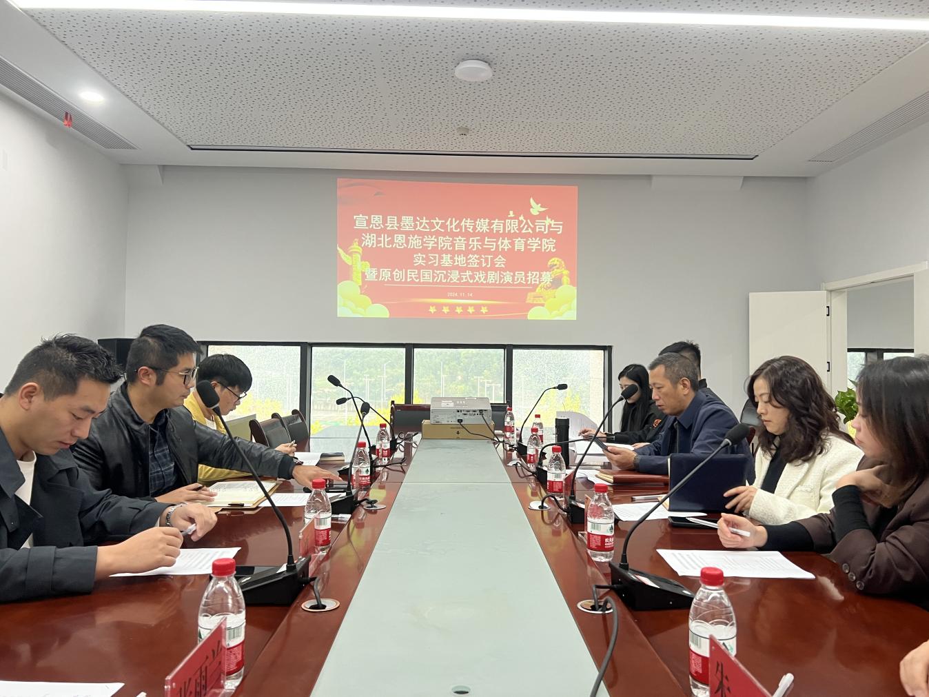 2024年11月14日,湖北恩施學(xué)院音樂與體育學(xué)院與宣恩縣墨達(dá)文化傳媒有限公司召開實(shí)習(xí)基地簽訂會(huì)暨原創(chuàng)民國沉浸式戲劇演員招募會(huì)。音樂與體育學(xué)院黨總支書記徐淑良主持會(huì)議,音樂與體育學(xué)院副院長、舞蹈系主任譚衛(wèi),宣恩縣融媒體中心總編輯陽平,宣恩縣融媒體中心副主任魏小玲,宣恩縣墨達(dá)文化傳媒有限公司總經(jīng)理蔣秋銘,開心麻花團(tuán)隊(duì)演員劉靜陽出席會(huì)議。