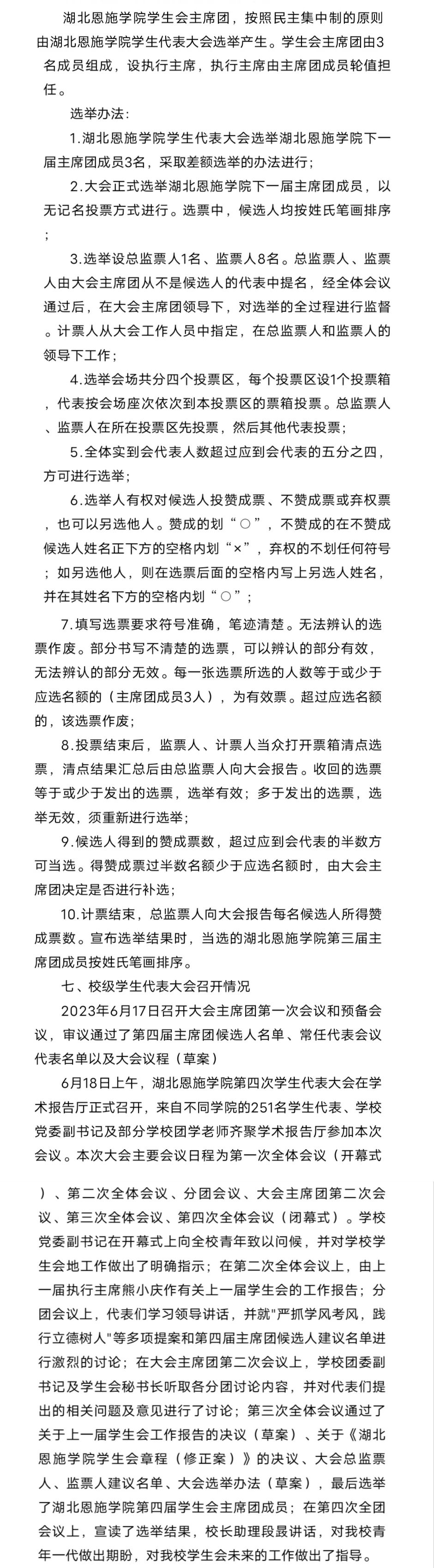 5、選舉產(chǎn)生湖北恩施學院第四屆學生主席團成員;