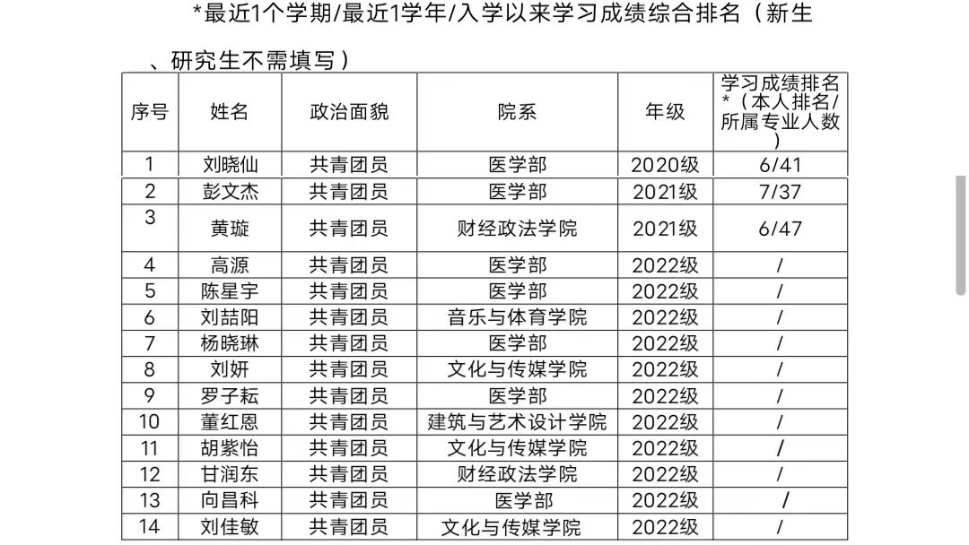 (八)學生會工作人員應為共產(chǎn)黨員或共青團員,理想信念堅定,熱愛和擁護中國共產(chǎn)黨,具有強烈的愛國意識、愛國情感,積極弘揚和踐行社會主義核心價值觀,品行端正、作風務實、樂于奉獻,具有全心全意為廣大同學服務的覺悟和能力。學生會干部應當是學有余力、學業(yè)優(yōu)良的學生,學習成績綜合排名在本專業(yè)前30%內(nèi),且無課業(yè)不及格情況。