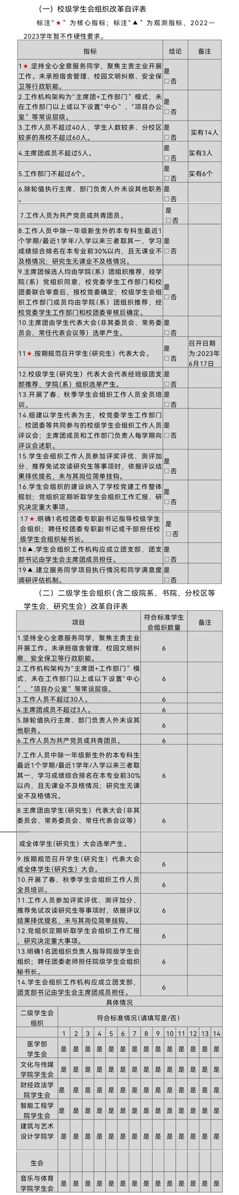 為落實共青團中央、教育部、全國學聯(lián)聯(lián)合下發(fā)的《關于推動高校學生會(研究生會)深化改革的若干意見》,并結(jié)合《關于鞏固高校學生會(研究生會)改革成果的若干措施》文件要求,接受廣大師生監(jiān)督,現(xiàn)將我校2022—2023學年學生會改革情況公開如下。
