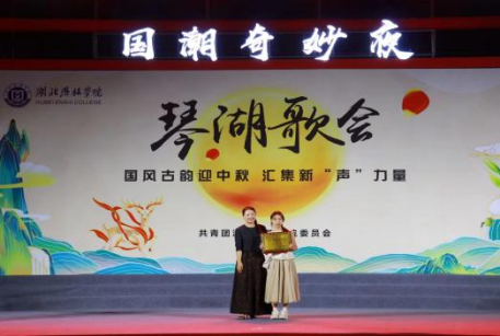 在琴湖歌會(huì)環(huán)節(jié),各個(gè)學(xué)院以“校歌合唱加自選歌曲”的形式進(jìn)行展現(xiàn)。醫(yī)學(xué)部一隊(duì)為我們帶來(lái)歌曲《相親相愛(ài)》,用飽含感情的演唱帶領(lǐng)現(xiàn)場(chǎng)觀眾沉浸于悠揚(yáng)的旋律之中。建筑與藝術(shù)設(shè)計(jì)學(xué)院《我們都是追夢(mèng)人》唱出青春活力,向我們展現(xiàn)少年為夢(mèng)想不懈奮斗的澎湃力量。插曲表演《綠水青山》,琴湖邊上,清歌雅舞,眾人陶醉。恩施州戲劇協(xié)會(huì)主席黎明老師演唱的《晚風(fēng)吹過(guò)哨塔》用樸實(shí)真切的歌詞和扣人心弦的旋律帶我們穿越時(shí)間和空間,又見(jiàn)一幅別樣畫(huà)面。音樂(lè)與體育學(xué)院演繹的歌曲《尋夢(mèng)》榮獲琴湖歌會(huì)特等獎(jiǎng),恩施州舞蹈協(xié)會(huì)吳丹老師為其頒發(fā)證書(shū)并合影留念。