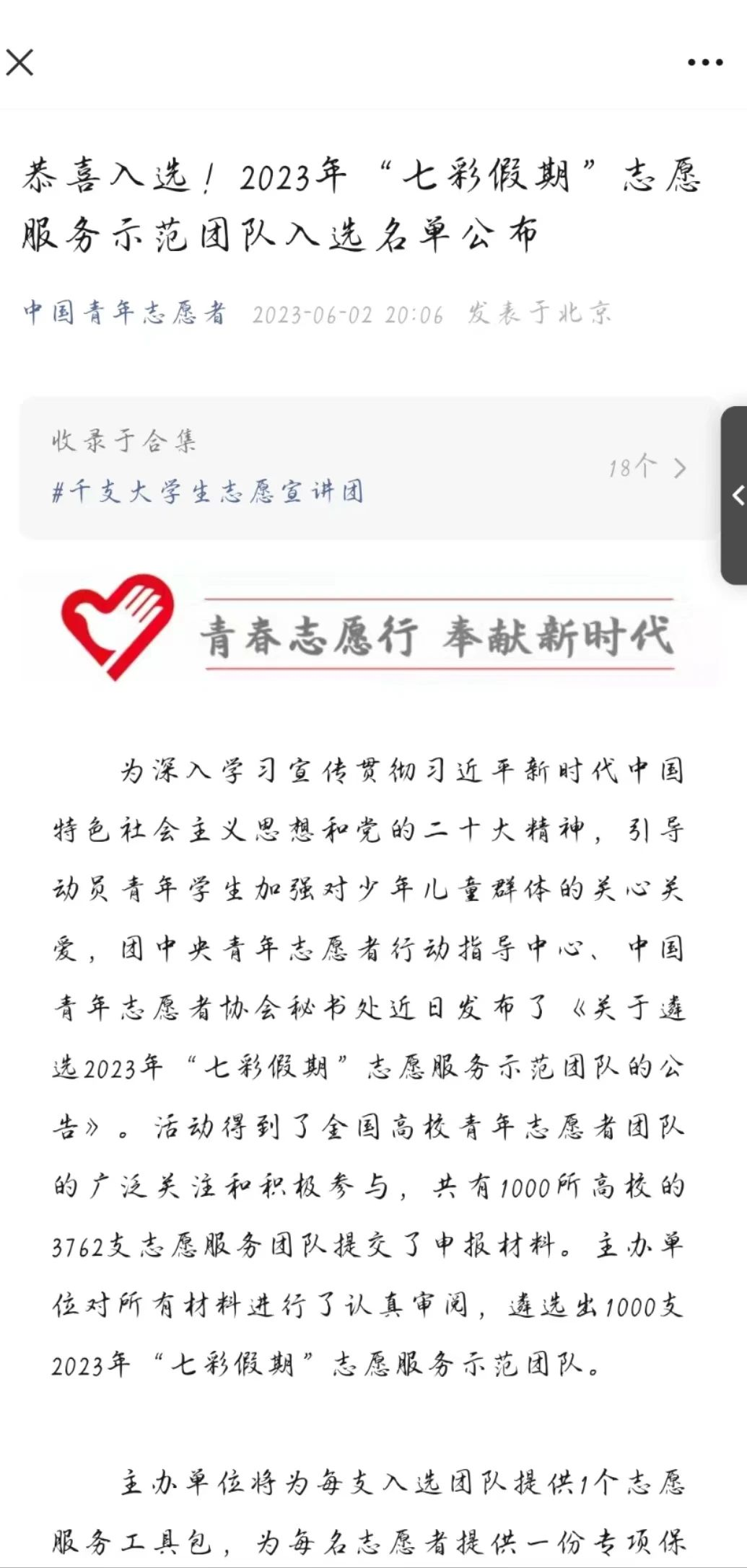 在志愿服務的過程中,湖北恩施學院青陽志愿服務隊的活動成果被湖北日報等媒體報道,該隊伍也在今年第二次入選了共青團中央“七彩假期”志愿活動項目國家示范隊。