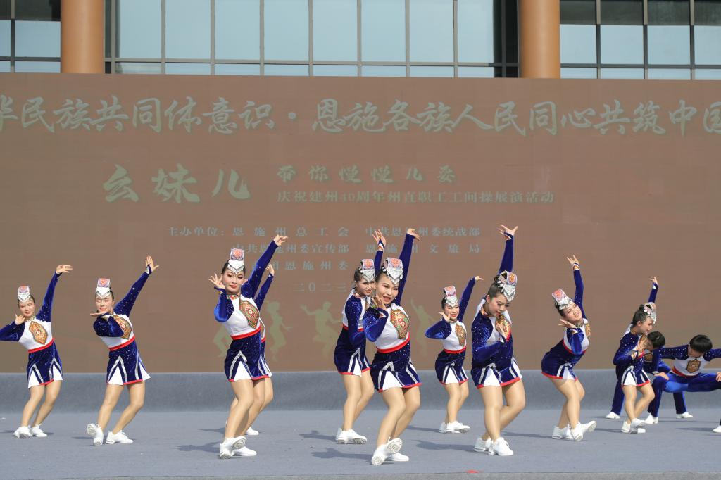 4月11日,湖北恩施學(xué)院在鑄牢中華民族共同體意識(shí)·恩施各族人民同心共筑中國(guó)夢(mèng)——慶祝建州40周年《幺妹兒帶你慢慢兒?!方搪毠すらg操州直展演活動(dòng)中,榮獲“二等獎(jiǎng)”。本次活動(dòng)由州總工會(huì)、州委統(tǒng)戰(zhàn)部、州委宣傳部、州文旅局主辦。