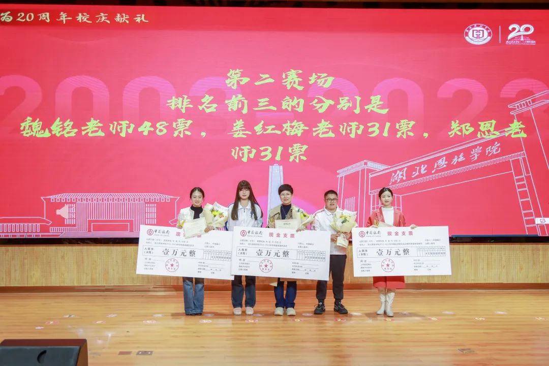 經(jīng)過3個多小時激烈角逐,經(jīng)180位學(xué)生評審團現(xiàn)場投票,最終,財經(jīng)政法學(xué)院周婷婷、醫(yī)學(xué)部魏銘、建筑與藝術(shù)設(shè)計學(xué)院覃靜等9位老師榮獲“2022-2023學(xué)年我最喜愛的老師”榮譽稱號。