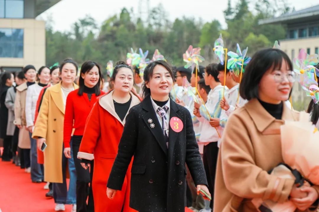 紅毯入場儀式上,氣球階梯通道寄托著對老師和同學(xué)們未來走向輝煌的美好祝愿;180位學(xué)生評審團揮舞著小風(fēng)車,用熱情的掌聲和響亮的呼聲回應(yīng)著對老師的喜愛;18位參賽教師姿態(tài)優(yōu)雅、笑容洋溢,溢于言表的是他們對教育的熱愛和對學(xué)生的溫情。