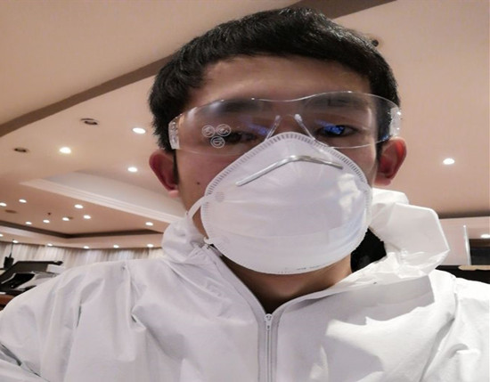 秋季學(xué)期結(jié)束后,黃榮濤同學(xué)為磨練自己并減輕家庭負(fù)擔(dān),通過互聯(lián)網(wǎng)的求職平臺(tái),在武漢找到勤工儉學(xué)的工作單位,1月3日,前往武漢開始假期勤工儉學(xué)。隨后,新型肺炎在武漢爆發(fā),他通過網(wǎng)上新聞看到武漢在招募志愿者的公告后,他毅然決然的走向了防疫第一線。他說:“報(bào)名當(dāng)志愿者,一方面可以提升自己,磨練自己,畢竟自己也是醫(yī)學(xué)生;另一方面呢,也可以為國家做貢獻(xiàn),在這危急的情況下能盡一份綿薄之力?!痹诋?dāng)?shù)卣才畔拢瑢\嚢阉拥轿錆h武昌區(qū)的如家酒店。有幸成為這里唯一一名學(xué)生志愿者。