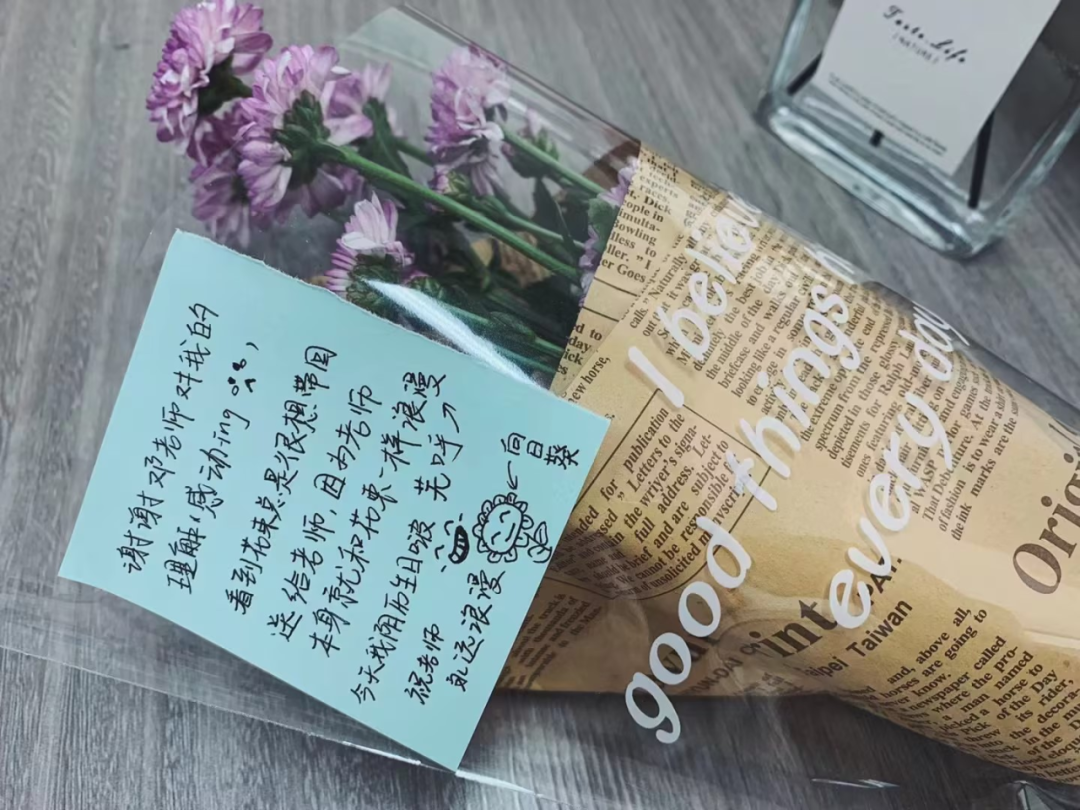 談到有沒有正在交往的對(duì)象時(shí),鄧藝明笑著說:“有時(shí)間談戀愛,還不如多花一點(diǎn)時(shí)間在學(xué)生身上?!彼窃敢鉃閷W(xué)生花心思的,每年都會(huì)為學(xué)生制造一些特殊的儀式感。2020級(jí)的學(xué)生入校時(shí),她讓自己帶的400多個(gè)學(xué)生每人給“五年后的自己”寫了一封信,那400多封信至今仍保存在她的辦公桌里;在特別的節(jié)日里,會(huì)細(xì)心給學(xué)生們準(zhǔn)備小禮物。真心換真心,學(xué)生感受到她的用心,她也得到許多來自學(xué)生的溫暖。