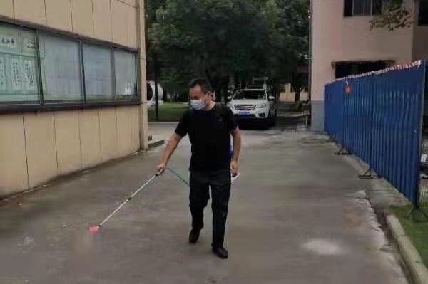 (徐芷玥的父親正在做消毒工作)