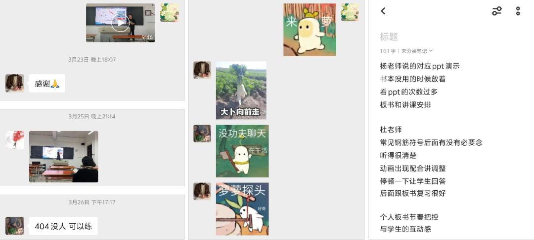 提到贏得特等獎的秘訣時,張一蕾說:“靠我一個人是沒辦法贏得比賽的,是團隊的力量讓我能取得這個好成績?!卑凑找?guī)定,新入職的專職老師要嚴格實行為期一年坐班制度,不少老師對此有所抱怨,張一蕾卻并未因此苦惱過,相反,她是愿意坐班的?!拔覀儗W(xué)院的工作氛圍很好,其實很多老師不需要坐班,但他們大部分時間都在辦公室,給新老師樹立了榜樣,我有疑問時他們都不吝賜教?!痹诒敬尉收n堂準(zhǔn)備過程中,張一蕾還與同期教師互相交流學(xué)習(xí),發(fā)現(xiàn)問題、共同打磨課程細節(jié)。不論是平時的教學(xué)工作還是賽事準(zhǔn)備過程,張一蕾不斷從前輩同事身上汲取知識養(yǎng)分,豐富教學(xué)經(jīng)驗,提升自我。