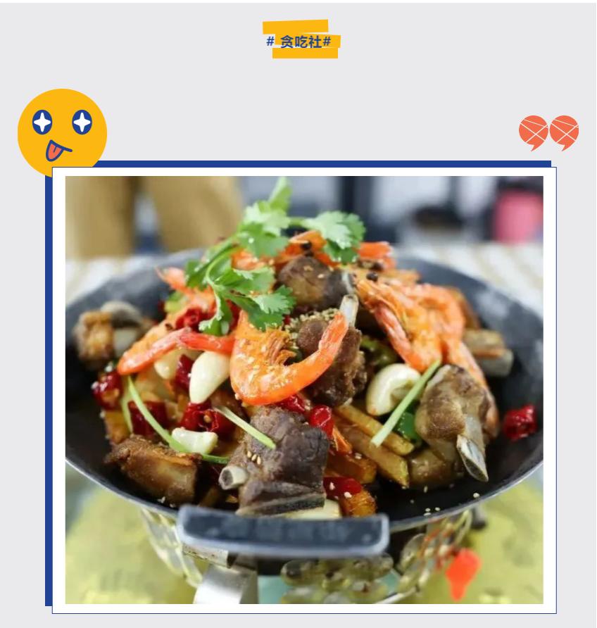 同學生日、朋友聚會,想吃更豐盛一點?那就來食堂三樓貪吃社吃中式炒菜吧!聞其香,心曠神怡;嘗其肉,回味無窮!焦香的大蝦配上扎實的排骨,再撒上碧綠色的香菜,簡直就是絕配!再配上四菜一湯,價格不貴又美味!