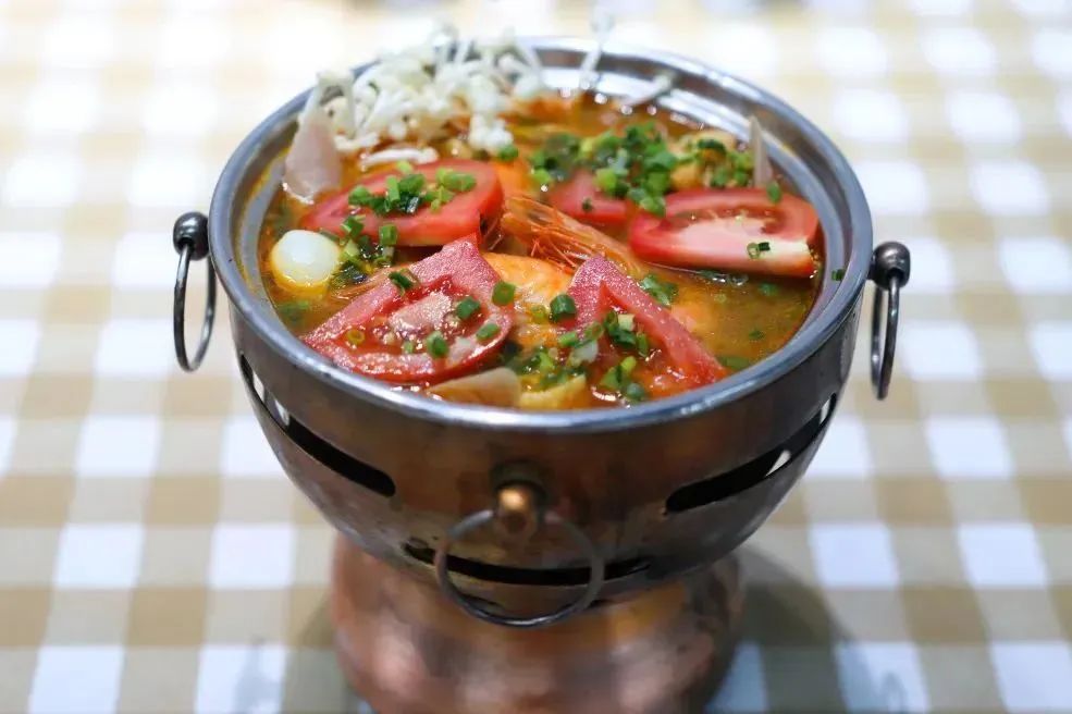 泰式小火鍋是南洋風味的代表,添加了天然植物香料,有以泰國菜酸辣口味為主的濃郁湯底,也有以特殊香料沾醬為主的清淡口味。吃完后喝一杯青檸水,清一清嘴巴,非常清爽。