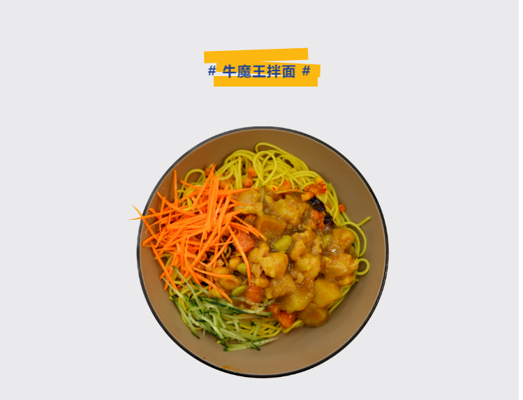 辣帶來的爽總是令舌頭無法戒掉,秋冬之季,吃一碗剁椒牛魔王拌面,鮮香麻辣,瞬間暖身,捧來一碗拌面。碗里淡黃色的面條上點綴著胡蘿卜絲和黃瓜絲,紅里帶綠。面與醬汁完美搭配,拿起筷子攪拌一下,每根面條都沾滿油潤醇香的醬汁,鮮香美味,一口牛肉一口面,滿滿一碗落胃,由上而下都是滿足!