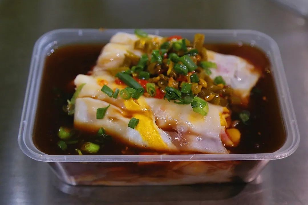 廣東的雞蛋腸粉是一定要去吃的!爽口不粘,一口下去是厚實又糯糯的米香味,簡單的雞蛋生菜為餡料把它的香、滑、韌三大優(yōu)點都突出了,桌上還有店家自己做的辣椒醬可以調味~