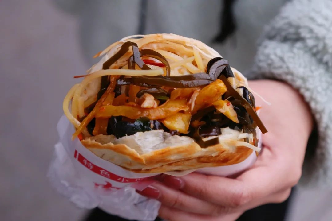 在西安什么都可以夾饃,一些打趣的說法,給他們一個饃,他們能夾下整個世界。我們學校的這家肉夾饃素菜也可以根據(jù)自己的需求加哦。