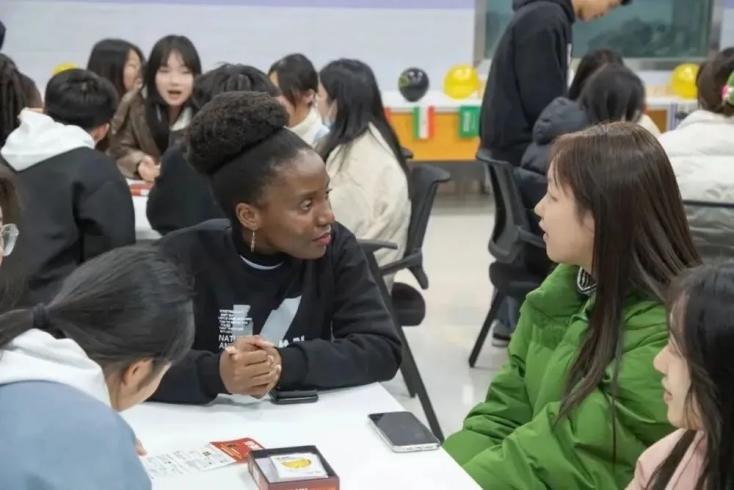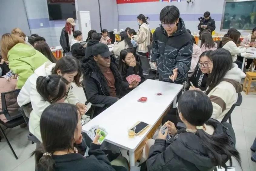 分享結(jié)束后,在場的同學(xué)們與3名留學(xué)生一起進(jìn)行了關(guān)于英國文化的純英語交流?!疤矚g‘炸彈貓咪’的游戲環(huán)節(jié)了!”同學(xué)們紛紛表示這種活動既輕松有趣,又能在無形之中給她們提供鍛煉英語口語、溝通表達(dá)、人際交往的能力。