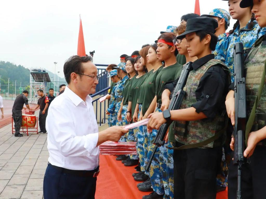 由湖北恩施學(xué)院校長助理、軍訓(xùn)團(tuán)辦公室主任王冕主持軍訓(xùn)開幕式。