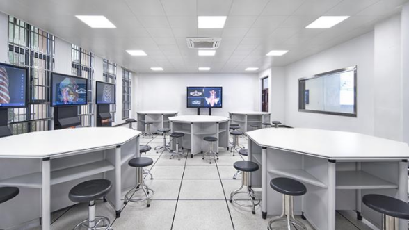 形態(tài)學(xué)實驗室主要承擔(dān)臨床醫(yī)學(xué)、護理學(xué)、醫(yī)學(xué)檢驗等專業(yè)的形態(tài)學(xué)實驗教學(xué),設(shè)有學(xué)生互動實驗室、實驗準(zhǔn)備室、中控室等,擁有全套數(shù)碼顯微互動實驗設(shè)備,主要用于組織胚胎學(xué)和病理學(xué)課程開展綜合設(shè)計性實驗,研究機體正常微細結(jié)構(gòu)及疾病發(fā)生的形態(tài)結(jié)構(gòu)變化。
