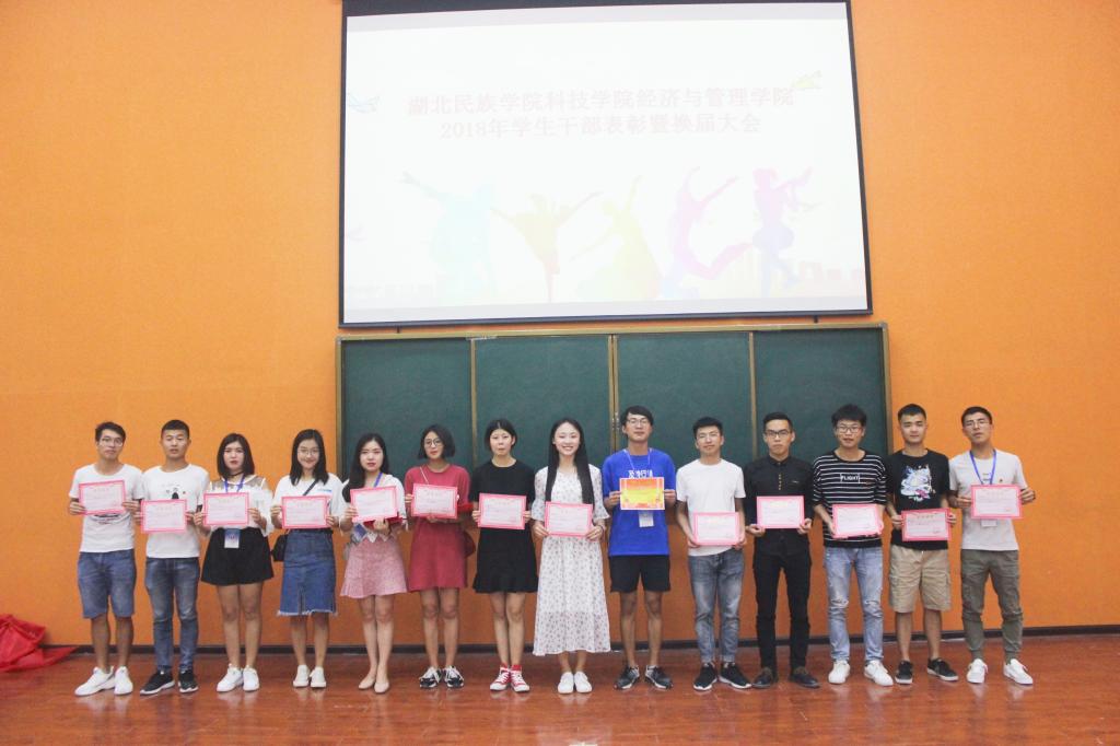 (本網(wǎng)訊 通訊員 孫浩 攝影 周宜 75日16:00,經(jīng)濟與管理學院于多功能報告廳舉辦了2018年學生干部換屆暨表彰大會。出席本次大會的有學院副院長張高勝老師、學工處處長朱耀乾老師學工處副處長李銀超、校團委書記陸玲老師、院黨總支副書記、學生科科長劉娜老師、總支書記劉丹老師、學工處丁玲老師劉粟老師、院孫江艷老師孫強語老師、邵科老師,各級學生組織代表及兄弟院系學生干部代表、我院新老學生干部、各班學生代表等百余名同學。校廣播臺主持人龍宇主持此次大會。