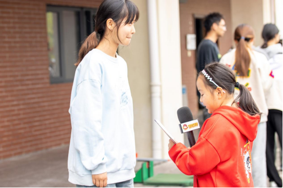伴隨著歡笑聲,孩子們開啟了他們的校園參觀之旅。戶外上鏡課是本次活動的一大亮點。孩子們在專業(yè)指導(dǎo)老師的帶領(lǐng)下,學(xué)習(xí)如何在鏡頭前展現(xiàn)最自然、最自信的自己。他們在如琴湖邊戴著“小蜜蜂”,挺立身姿,就像一個有著豐富經(jīng)驗的演講者,從容地講述著他們的夢想。他們手持采訪設(shè)備,化身為小小記者,穿梭在校園各個角落,尋找采訪對象,挖掘校園故事。在這個過程中,孩子們不僅學(xué)會了如何與人溝通交流,觀察力和判斷力也得到了良好的鍛煉。