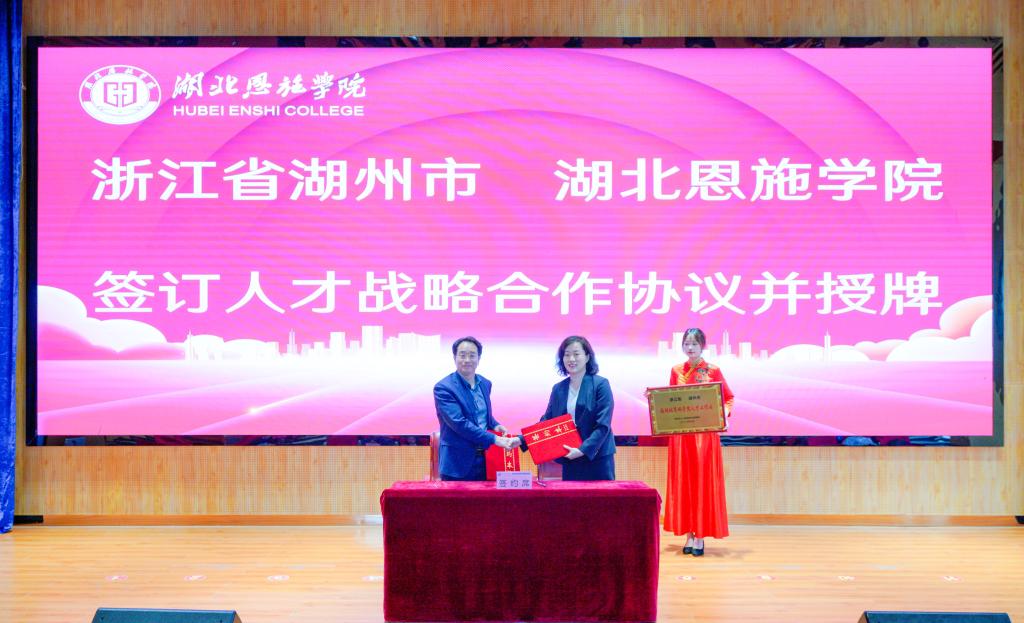 此次本次招聘會,學(xué)校還與湖州市人力資源和社會保障局簽訂人才戰(zhàn)略合作協(xié)議并舉行授牌儀式。校長馬鳳余期望能夠與湖州市人力資源與社會保障局達(dá)成長期合作,本次簽約也標(biāo)志著學(xué)校與浙江省湖州市的校地企業(yè)合作邁出了堅實(shí)的一步。他指出,校地企合作是推動地方經(jīng)濟(jì)社會社會發(fā)展的重要舉措,也是推動學(xué)校辦學(xué)模式和人才模式改革、增強(qiáng)為地方經(jīng)濟(jì)社會服務(wù)能力的有效途徑和切實(shí)需要。他表示,雙方將以此次簽約為契機(jī),進(jìn)一步加強(qiáng)地方資源優(yōu)勢與高校人才優(yōu)勢的結(jié)合,開展深度合作,建立互利共贏的機(jī)制,創(chuàng)造共同發(fā)展的機(jī)遇。