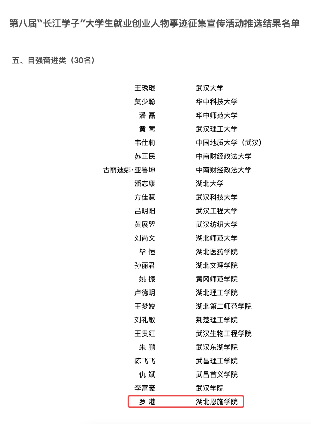 羅港榮獲第八屆“長江學(xué)子”稱號