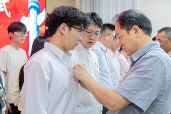 會上,黨委委員、各黨總支書記為新發(fā)展黨員佩戴黨徽,集體進(jìn)行入黨宣誓。全體黨員在領(lǐng)誓人的帶領(lǐng)下,齊聲重溫入黨誓詞?!拔抑驹讣尤胫袊伯a(chǎn)黨……隨時準(zhǔn)備為黨和人民犧牲一切,永不叛黨。”字字千鈞的誓言在會場回蕩,每一位黨員的眼神中都透露出堅定與執(zhí)著。這不僅是對黨和人民作出的莊嚴(yán)承諾,更是激勵大家在新時代新征程中奮勇前行的強(qiáng)大動力,提醒每一位黨員永葆對黨忠誠的政治本色,牢記初心使命。