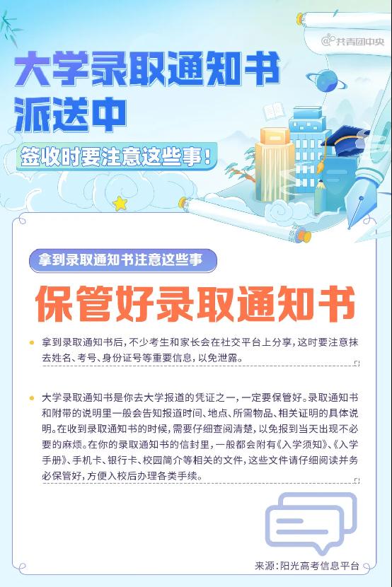 收到通知書后,別忘了仔細(xì)閱讀內(nèi)附的《新生入學(xué)須知》等重要材料哦!
