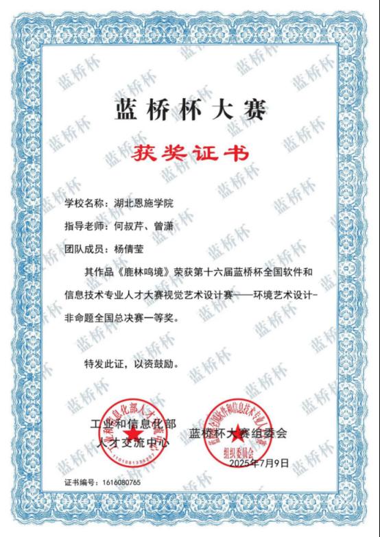2025年7月,柯賴宇作為唯一指導老師,帶領三名學生赴廣東佛山參加“第19屆中國好創(chuàng)意暨全國數字藝術設計大賽”(簡稱“3C大賽”或“中國創(chuàng)意挑戰(zhàn)大賽”)。團隊作品從全國眾多參賽單元中脫穎而出,榮獲全國一等獎,實現學校在該賽事的歷史性突破。