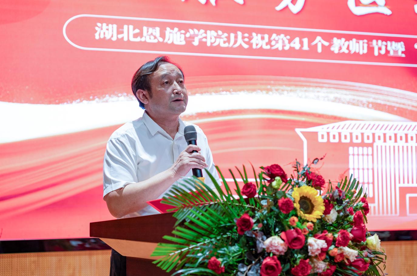 金秋九月,桃李芬芳。2025年9月10日晚,湖北恩施學院隆重舉行慶祝第41個教師節(jié)暨“鑄牢中華民族共同體意識”主題演講比賽。恩施州委統(tǒng)戰(zhàn)部、州委教育工委、湖北民族大學、州廣播電視臺相關人員及學校領導擔任評委。