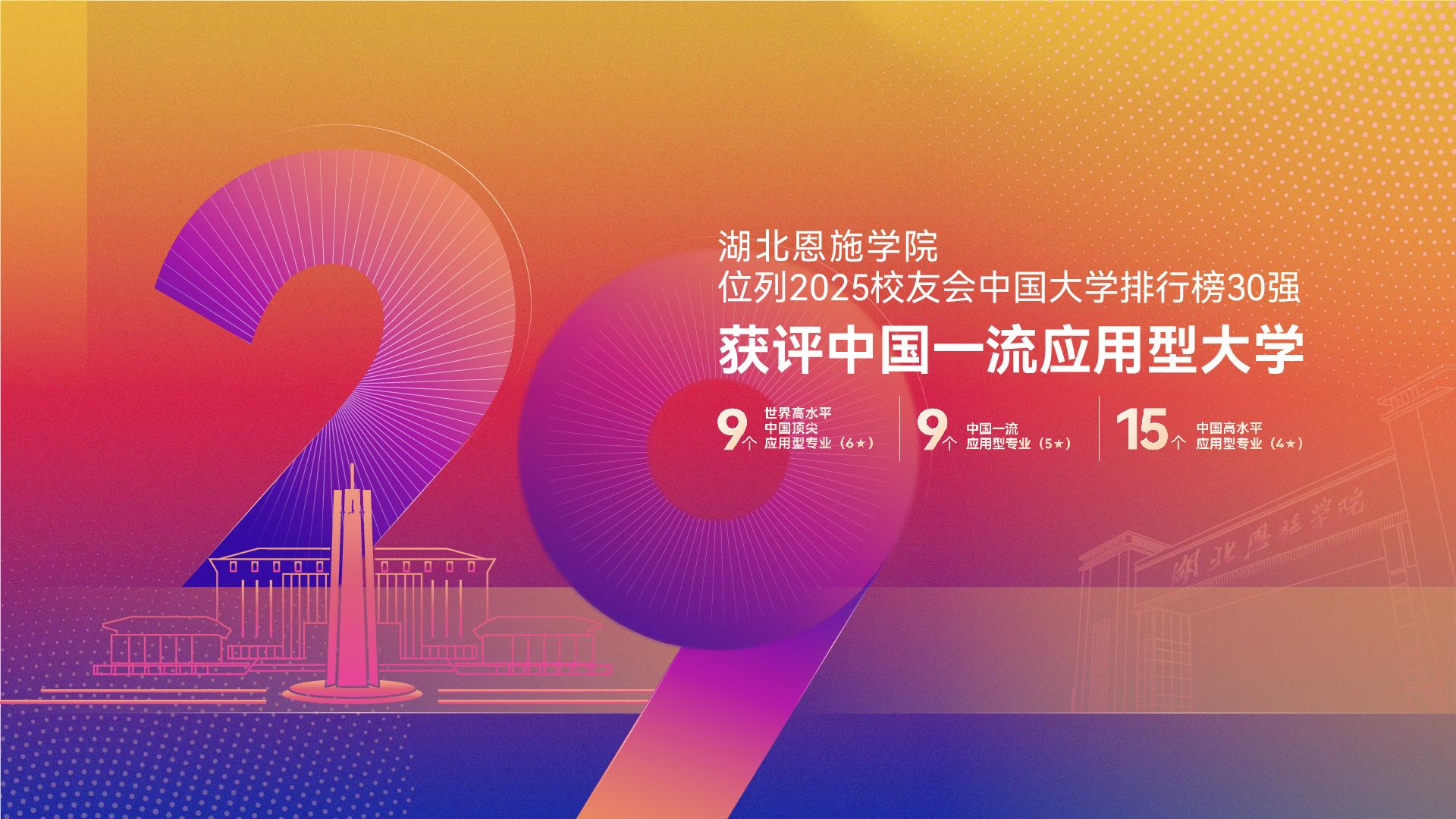 近日,備受矚目的校友會(huì)2025中國(guó)大學(xué)排名正式發(fā)布,湖北恩施學(xué)院名列2025中國(guó)民辦大學(xué)(Ⅰ類)排名第29位,首次晉級(jí)30強(qiáng)。在校友會(huì)2025中國(guó)應(yīng)用型大學(xué)分類排名中,獲評(píng)為“中國(guó)一流應(yīng)用型大學(xué)”。