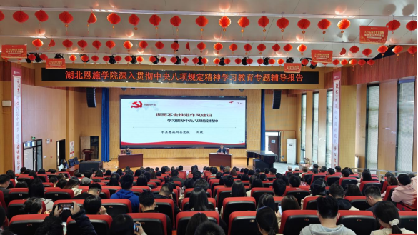 4月1日,湖北恩施學(xué)院黨委組織開(kāi)展深入貫徹中央八項(xiàng)規(guī)定精神學(xué)習(xí)教育專題輔導(dǎo)報(bào)告。學(xué)校全體黨員、校領(lǐng)導(dǎo)、處級(jí)以上領(lǐng)導(dǎo)干部、民主黨派人士和入黨積極分子代表參加。會(huì)議由黨委書(shū)記覃紅斌主持。