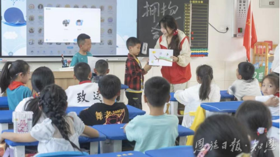 志愿服務(wù)隊(duì)隊(duì)員為孩子們上課。