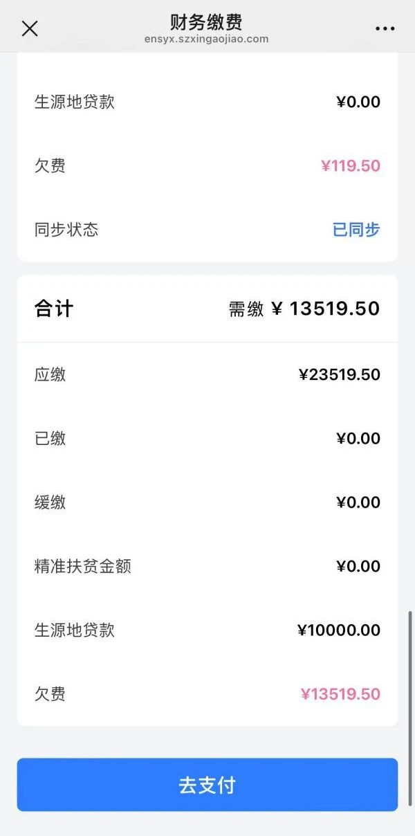 檢查賬單;確認(rèn)無誤后點擊賬單同步;賬單同步成功點擊去支付跳轉(zhuǎn)支付系統(tǒng)進行支付