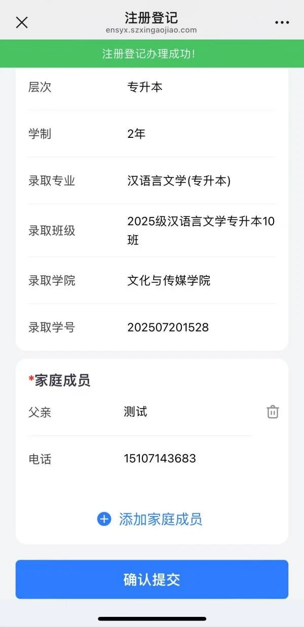 填寫必填項,檢查個人信息是否有誤;有誤請及時聯(lián)系學(xué)校老師;無誤點擊“確認(rèn)提交”