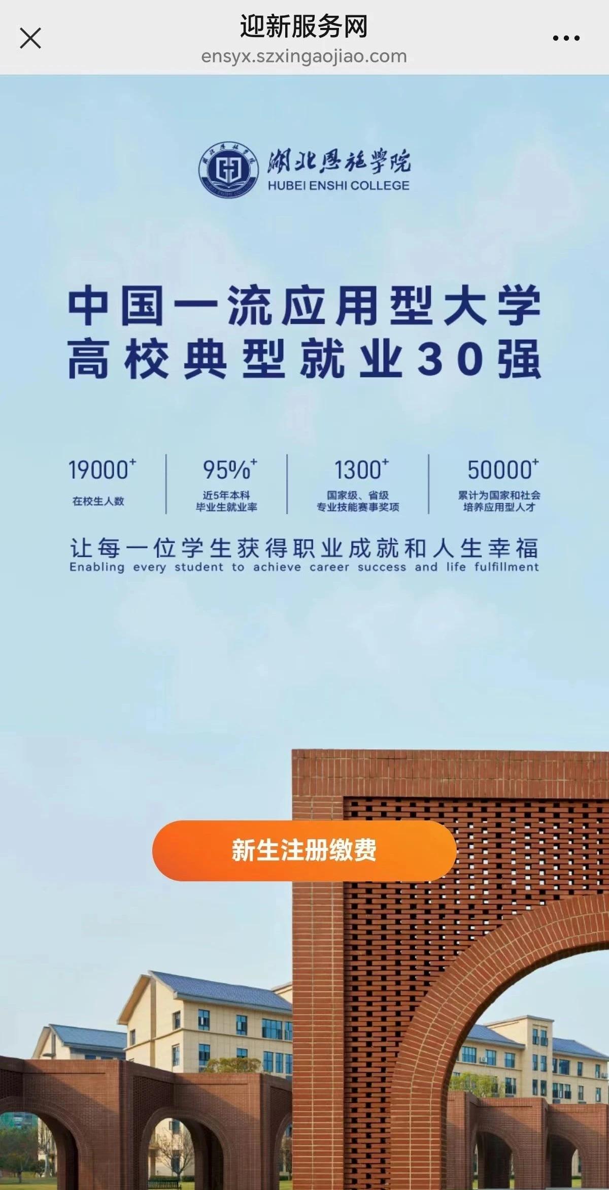 方法:微信關(guān)注“數(shù)智恩施學(xué)院”公眾號后,選擇下方菜單欄“新生服務(wù)”-“迎新系統(tǒng)”按鈕,訪問迎新服務(wù)網(wǎng)。